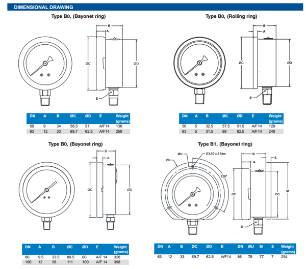-Kích thước mặt đồng hồ: 40mm, 50mm, 63mm, 100mm