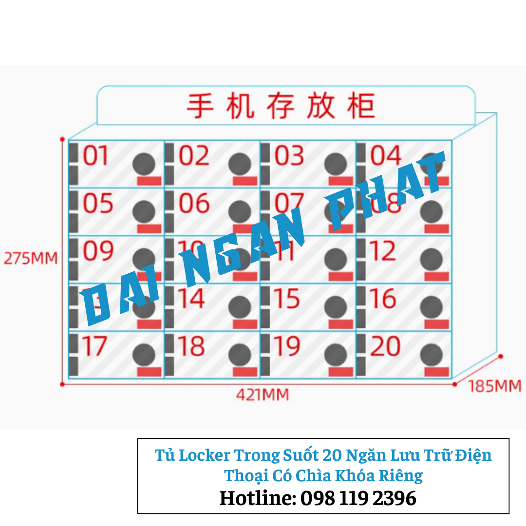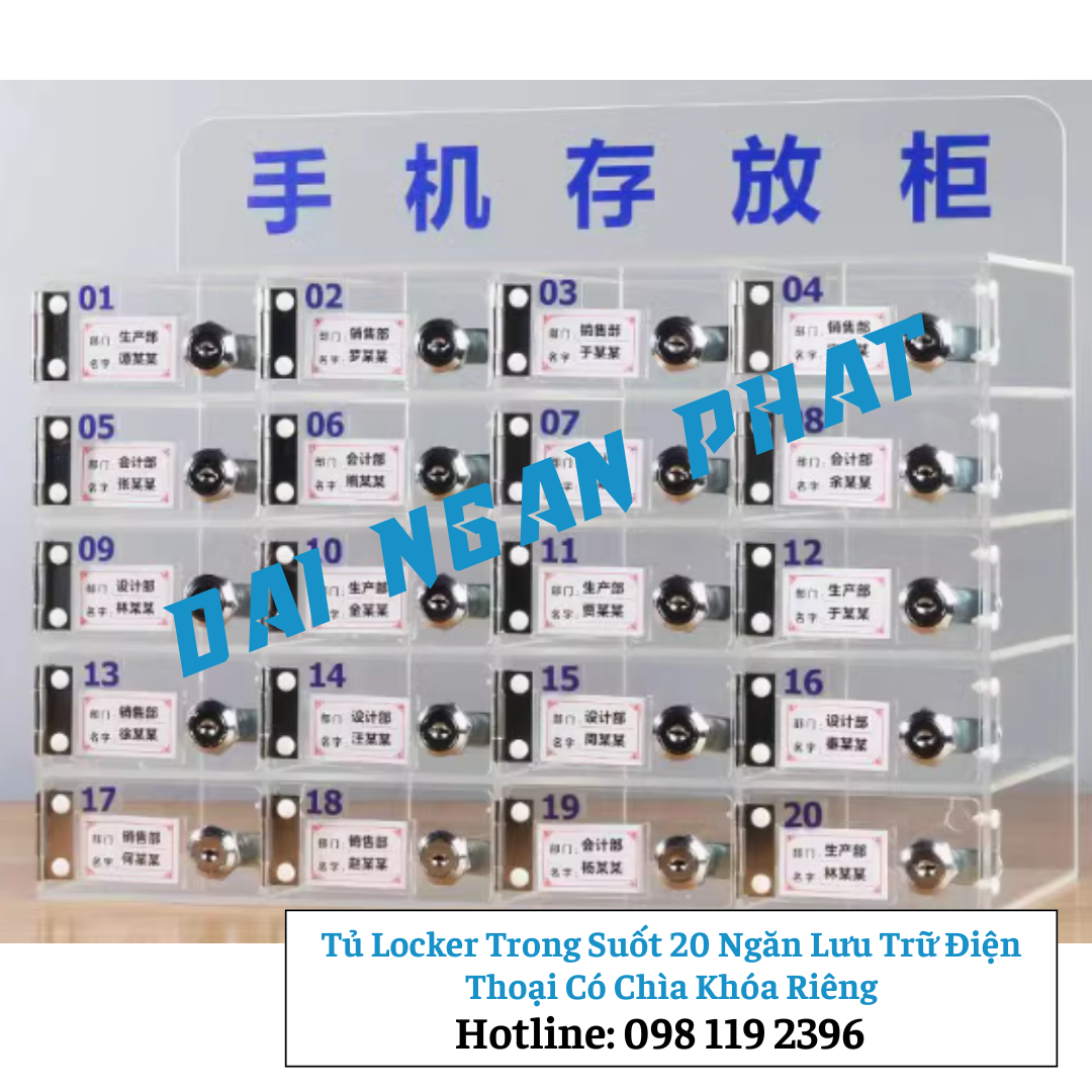 Vật Tư 247 - Đại Ngân Phát nhập khẩu và phân phối trực tiếp các loại Tủ Locker Trong Suốt 20 Ngăn Lưu Trữ Điện Thoại Có Chìa Khóa Riêng dành cho công nhân, nhân viên nhà máy, học sinh, sinh viên.